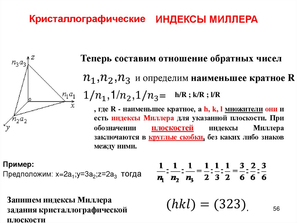 КристаллографическиеИНДЕКСЫ МИЛЛЕРА