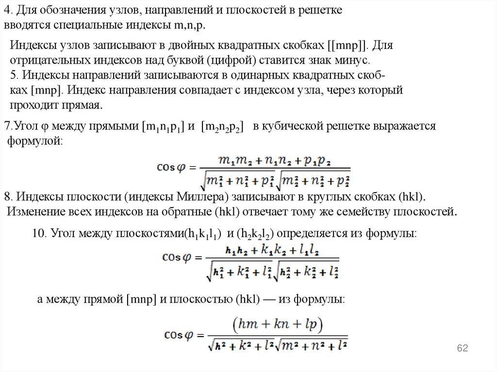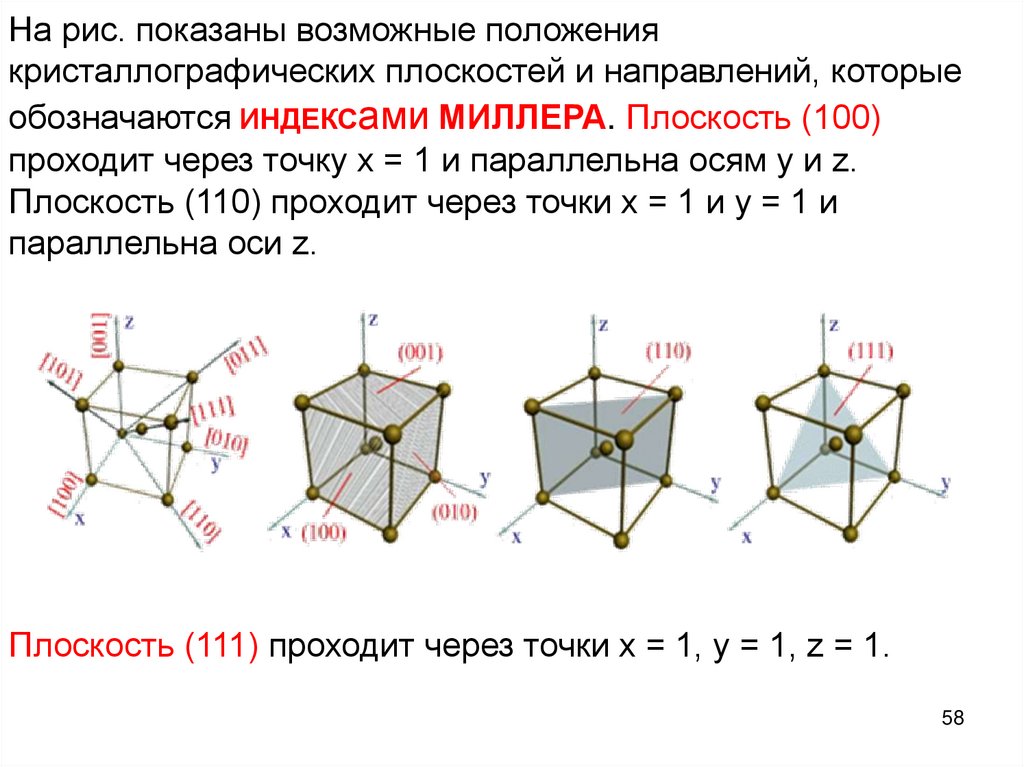 кристаллографических плоскостей и направлений, перпендикулярных этим плоскостям.