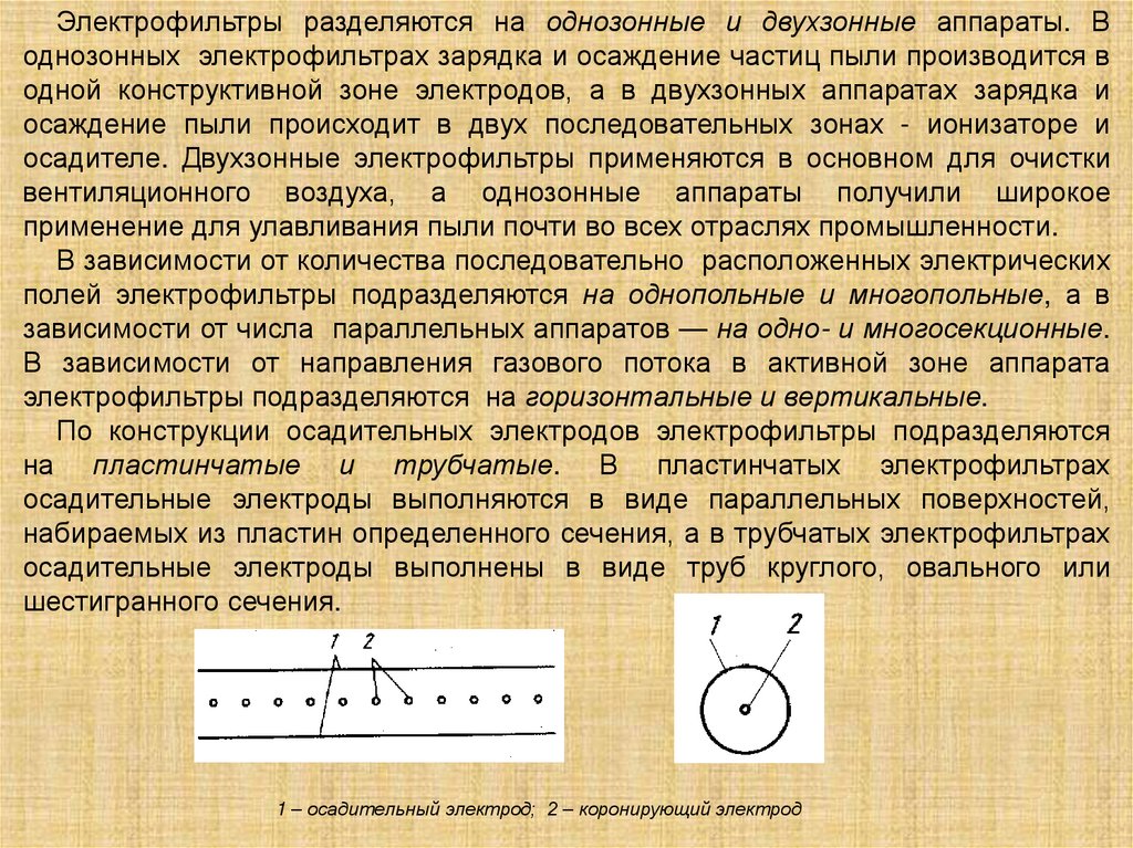 на пластинчатые и трубчатые. В пластинчатых электрофильтрах
