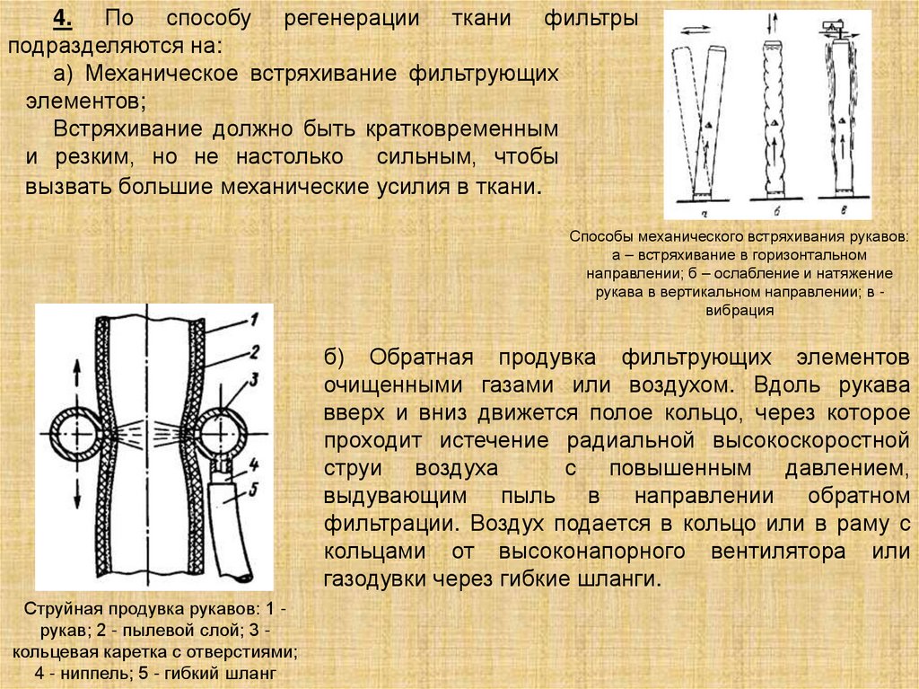 4. По способу регенерации ткани фильтрыподразделяются на: