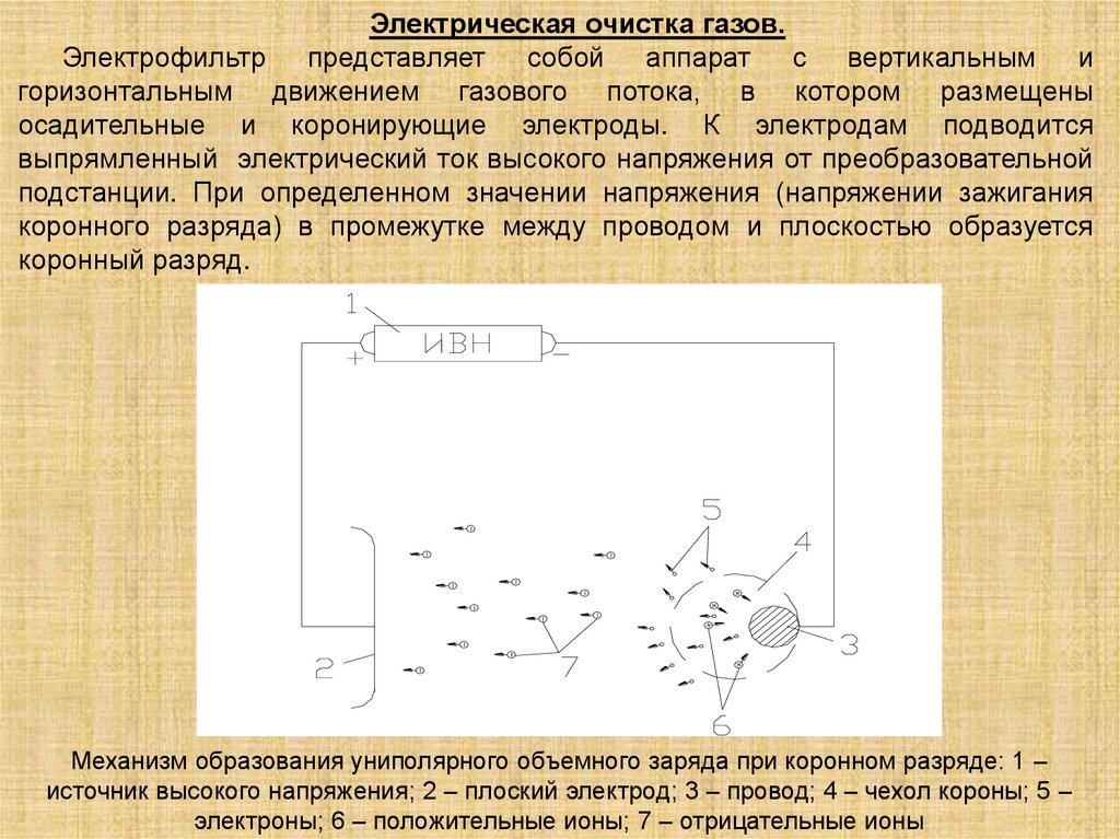 электроны; 6 – положительные ионы; 7 – отрицательные ионы