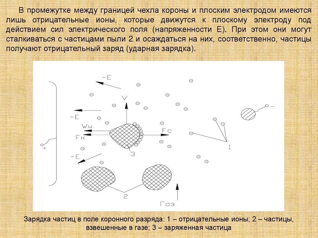 взвешенных частиц в поле коронного разряда, движения заряженных частиц к