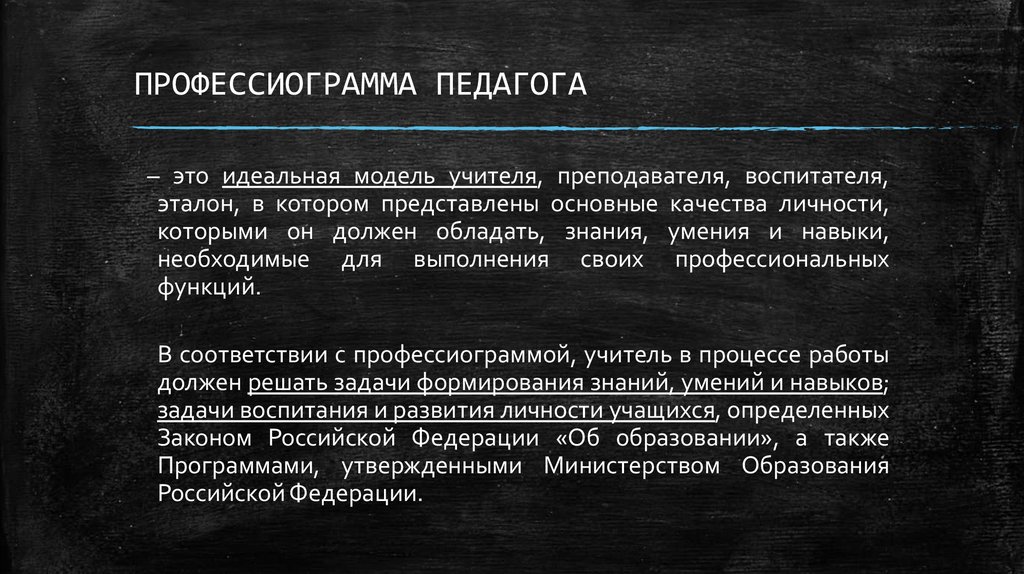 ПРОФЕССИОГРАММА ПЕДАГОГА– это идеальная модель учителя, преподавателя, воспитателя,