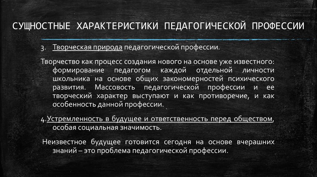 СУЩНОСТНЫЕ ХАРАКТЕРИСТИКИ ПЕДАГОГИЧЕСКОЙ ПРОФЕССИИ3. Творческая природа педагогической профессии.