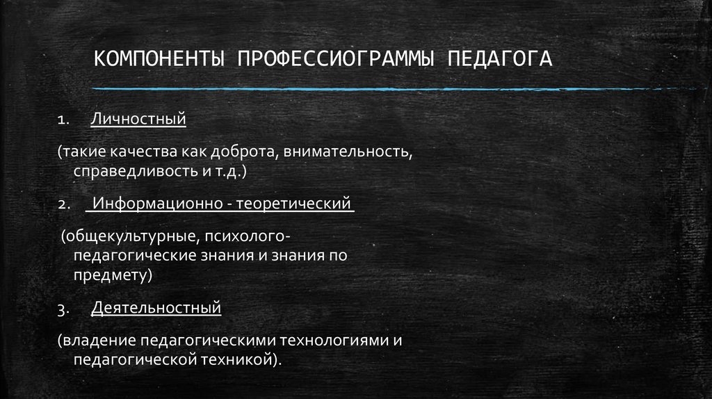КОМПОНЕНТЫ ПРОФЕССИОГРАММЫ ПЕДАГОГА1.