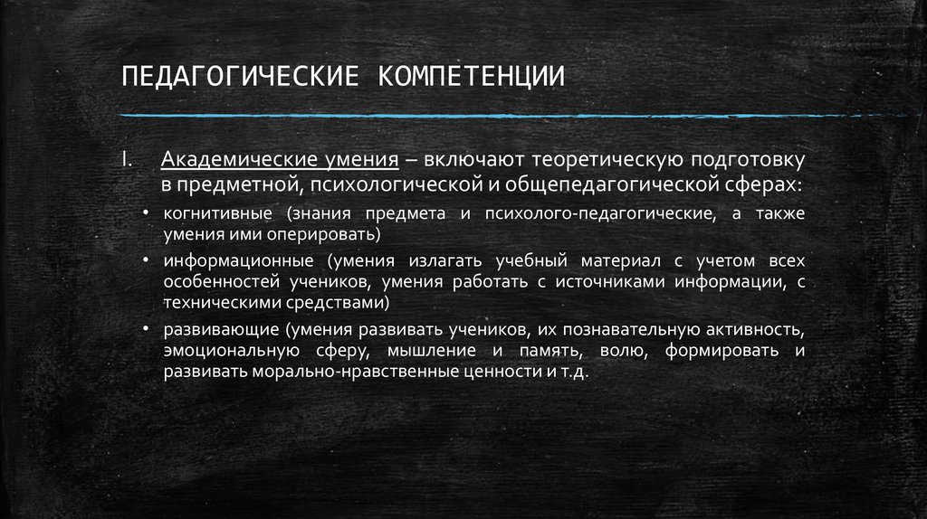 ПЕДАГОГИЧЕСКИЕ КОМПЕТЕНЦИИI.