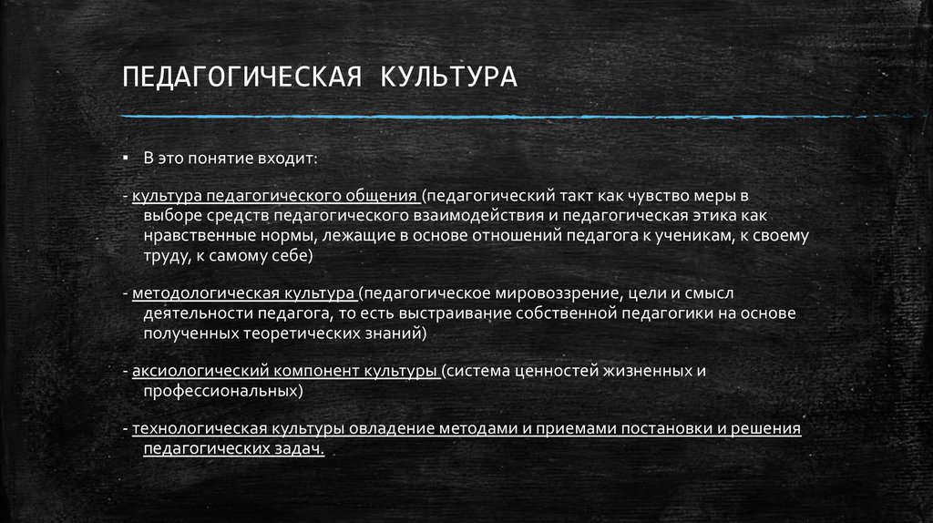 ПЕДАГОГИЧЕСКАЯ КУЛЬТУРА▪ В это понятие входит: