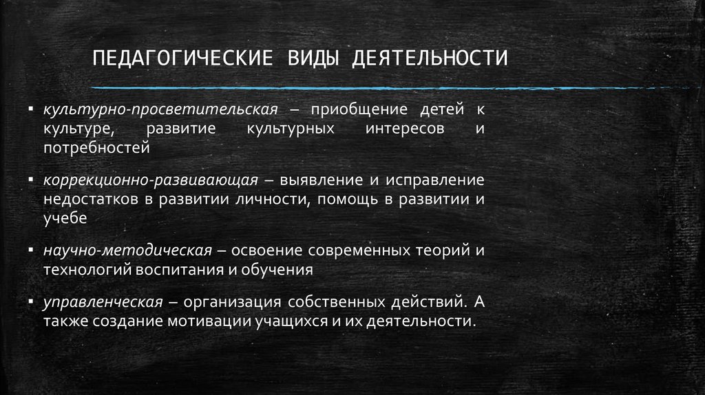 ПЕДАГОГИЧЕСКИЕ ВИДЫ ДЕЯТЕЛЬНОСТИ▪ воспитывающая – организация воспитательной