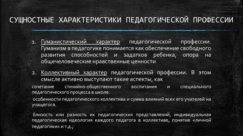 СУЩНОСТНЫЕ ХАРАКТЕРИСТИКИ ПЕДАГОГИЧЕСКОЙ ПРОФЕССИИ1. Гуманистический