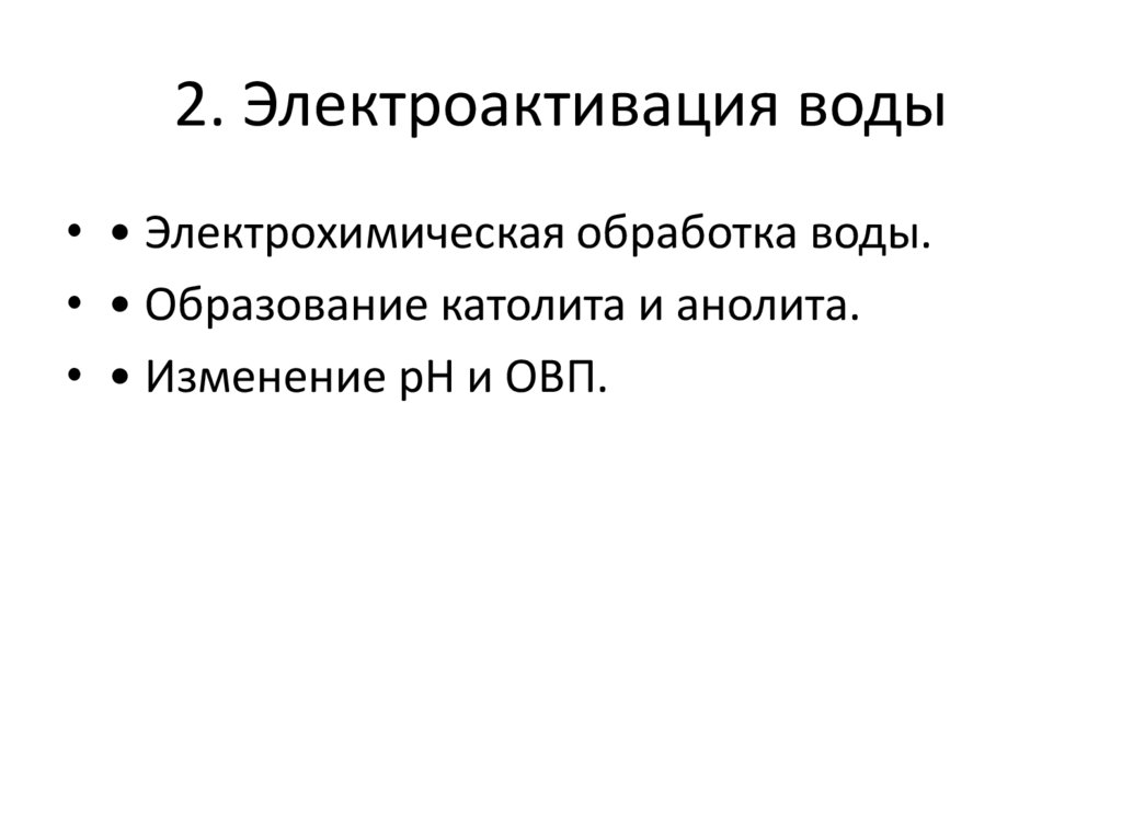 2. Электроактивация воды• • Электрохимическая обработка воды.