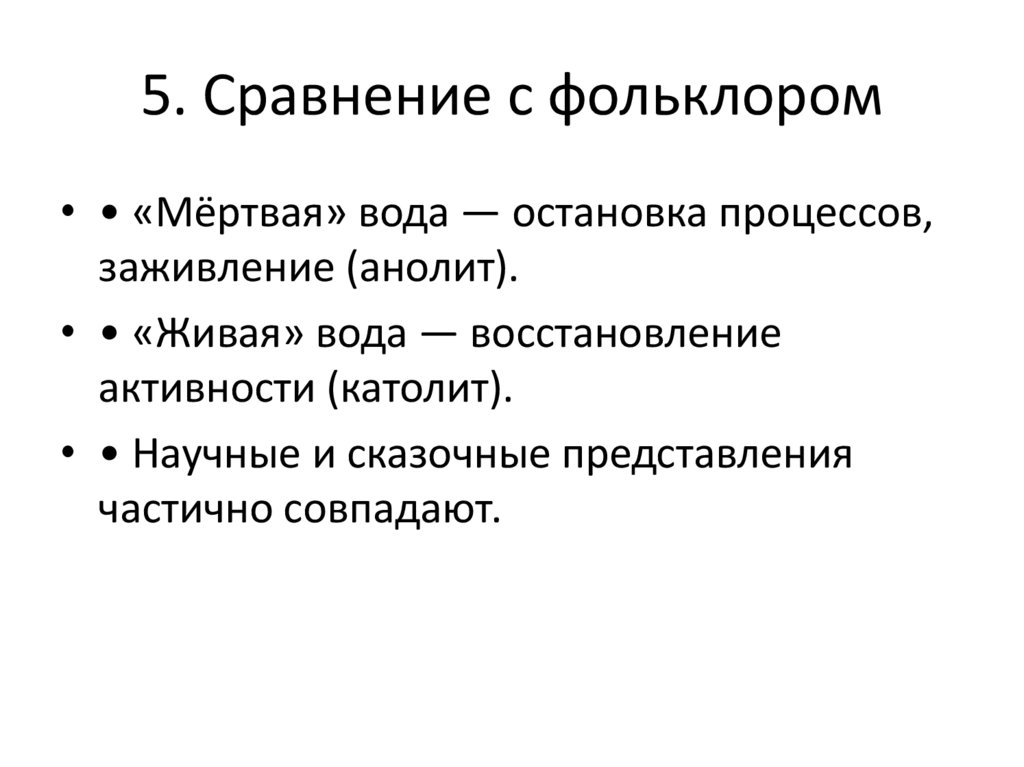 5. Сравнение с фольклором• • «Мёртвая» вода — остановка процессов,