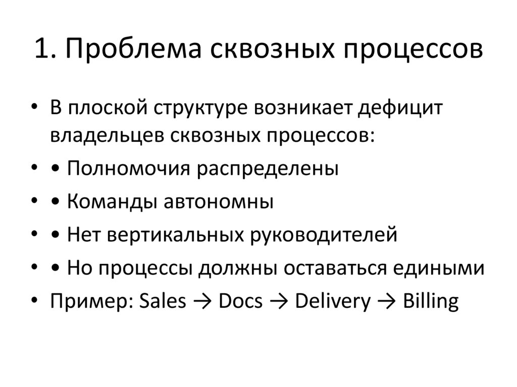 1. Проблема сквозных процессов• В плоской структуре возникает дефицит