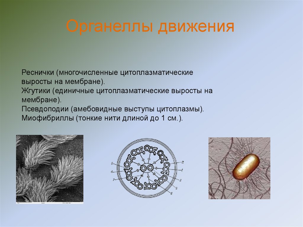 Органеллы движенияРеснички (многочисленные цитоплазматические