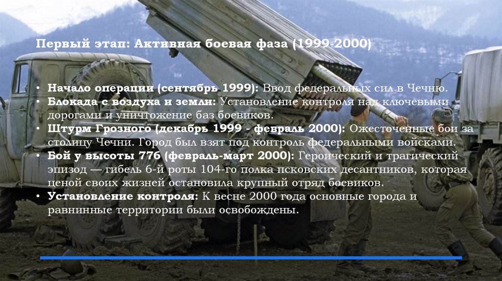 8. Вторая чеченская война: трагедия и стабилизация Вторая чеченская война стала одним из самых сложных и противоречивых событий в