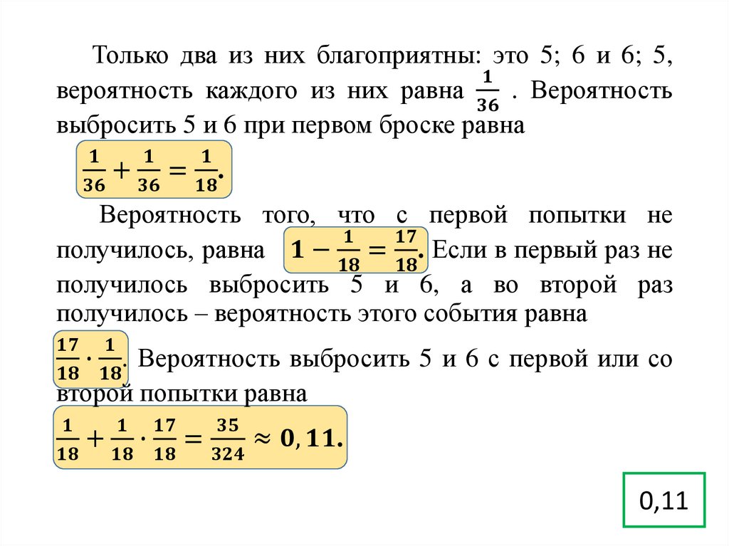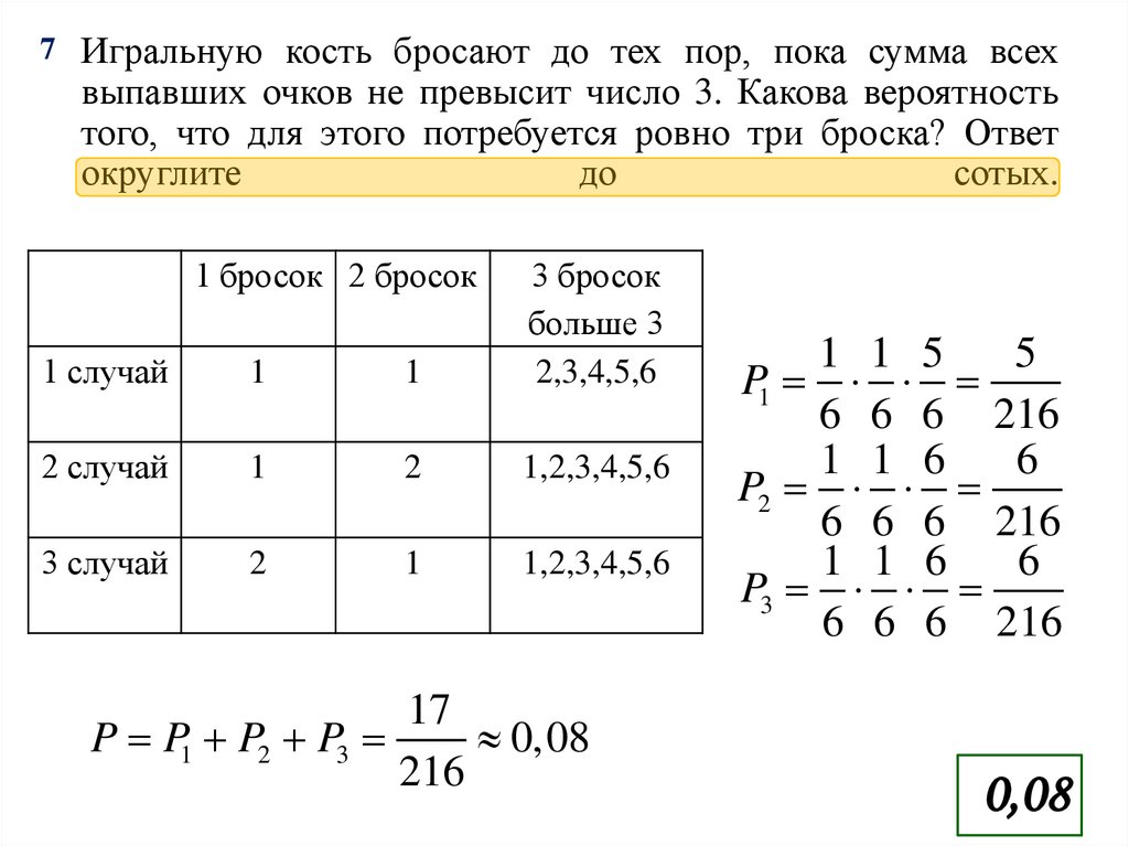 Игральная кость подбрасывается один раз, каковавероятность того, что выпадет «2» или «3»?