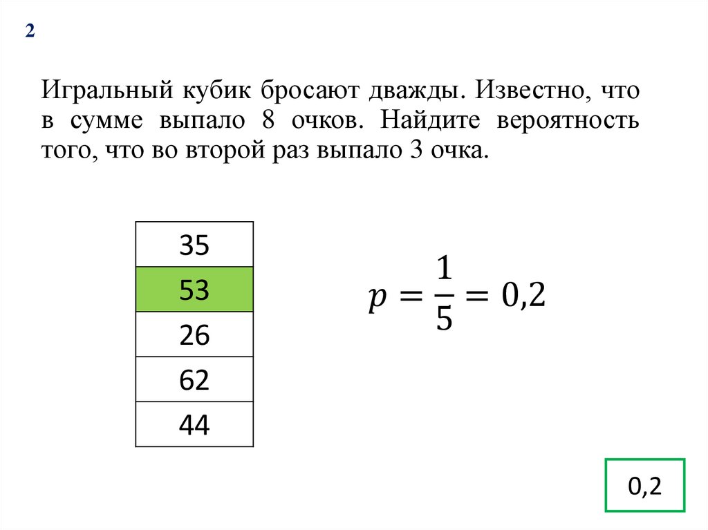 Игральная кость подбрасывается два раза, каковавероятность того, что выпадет на первой выпадет «2» и