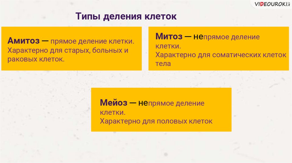 Типы деления клетокАмитоз ─ прямое деление клетки.