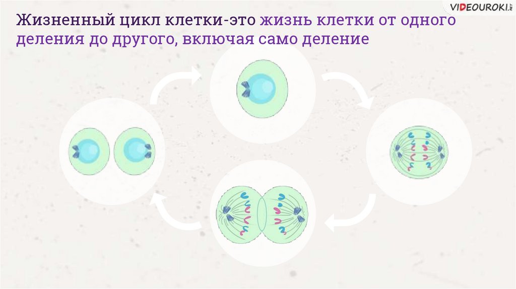 Жизненный цикл клетки-это жизнь клетки от одногоделения до другого, включая само деление