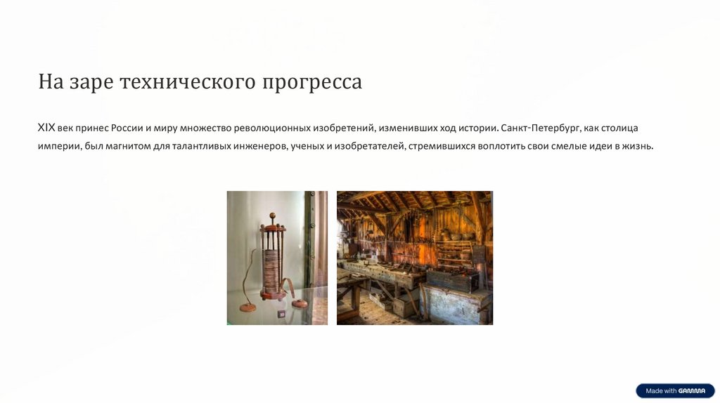 На заре технического прогрессаXIX век принес России и миру множество революционных изобретений, изменивших ход истории. Санкт-Петербург, как столица