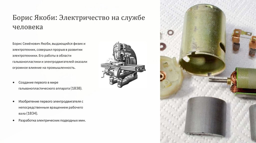 гальванопластики и электродвигателей оказали