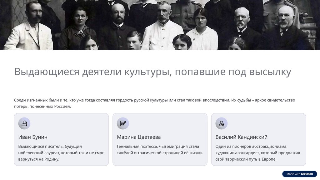 высланных так и не смогли вернуться, оставив свой след в эмигрантской культуре.