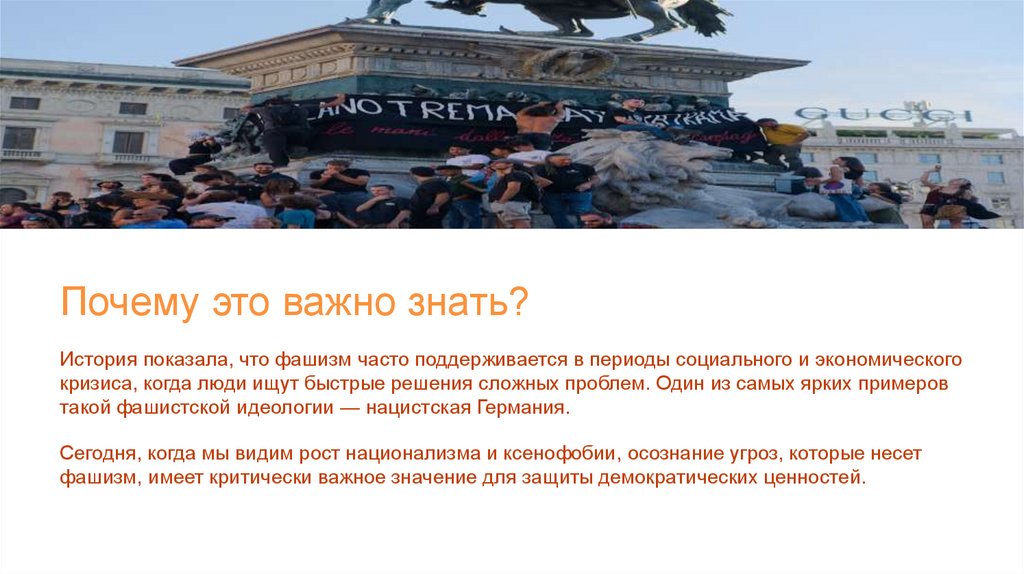 Почему это важно знать?История показала, что фашизм часто поддерживается в периоды социального и экономического