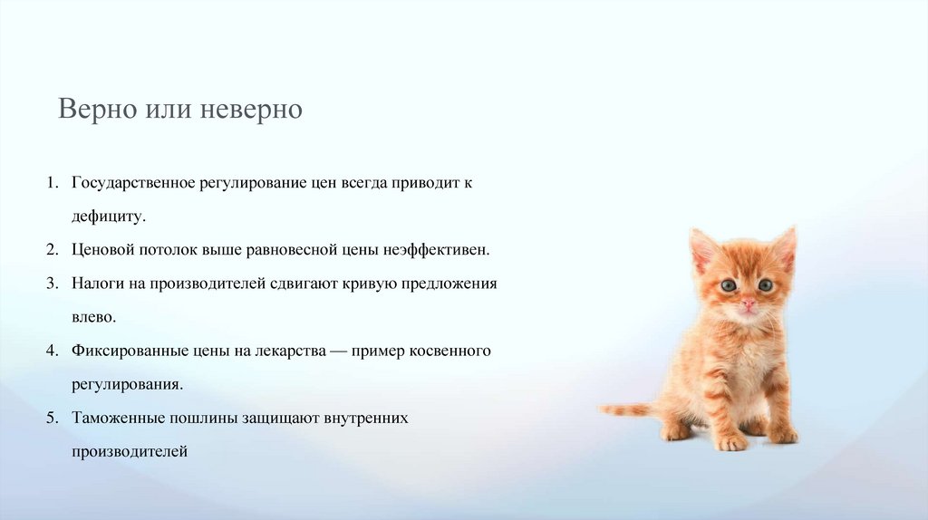 Верно или неверно1. Государственное регулирование цен всегда приводит к