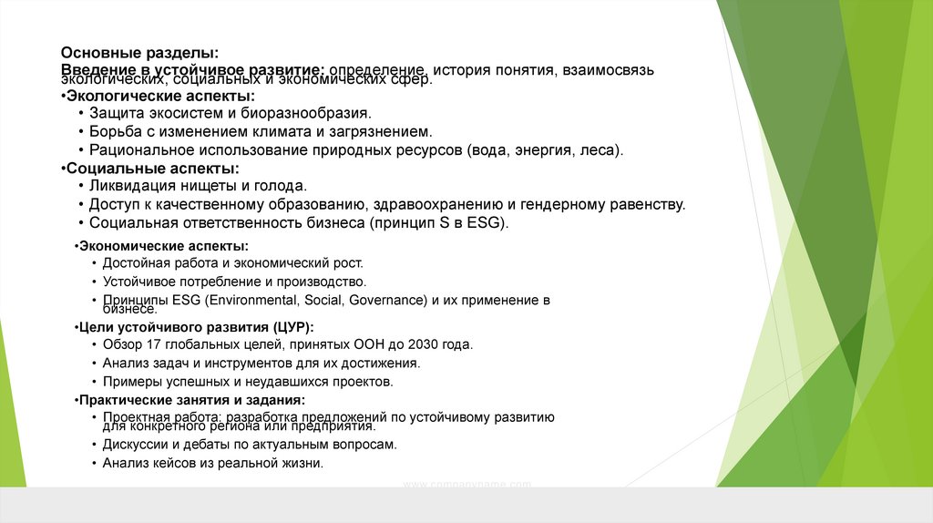 Основные разделы:Введение в устойчивое развитие: определение, история понятия, взаимосвязь