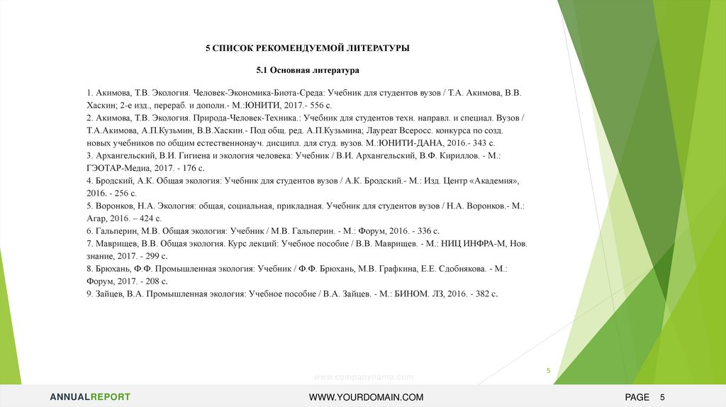 1. Акимова, Т.В. Экология. Человек-Экономика-Биота-Среда: Учебник для студентов вузов / Т.А. Акимова, В.В.
