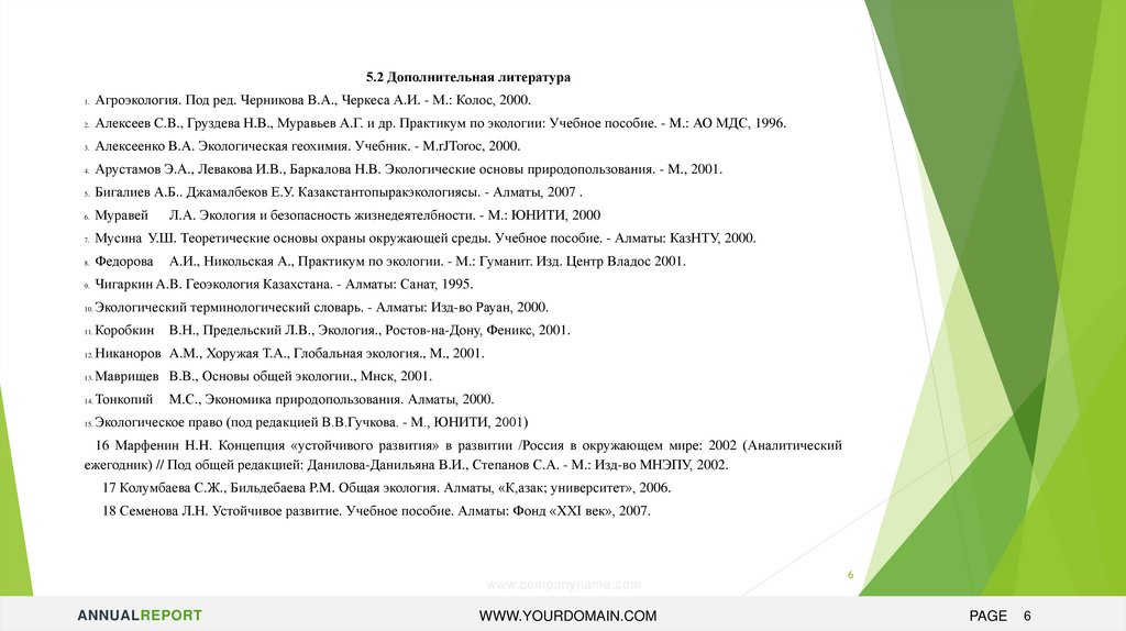 5. Воронков, Н.А. Экология: общая, социальная, прикладная. Учебник для студентов вузов / Н.А. Воронков.- М.: