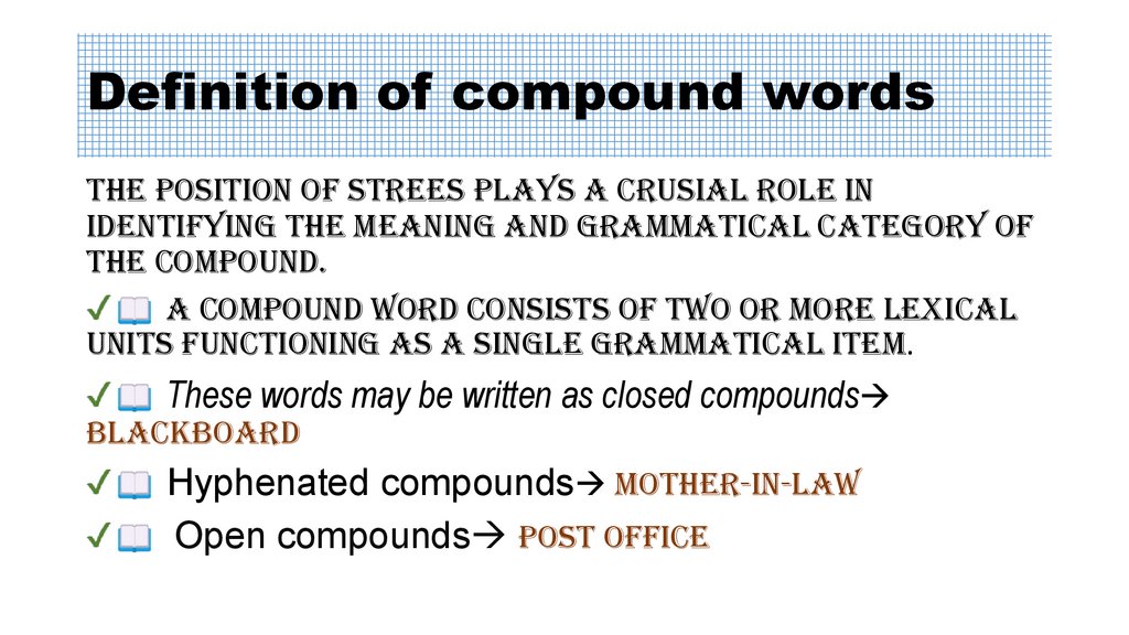 COMPOUND ADJECTIVESStress usually falls on the second element