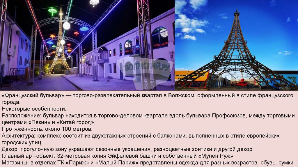 «Французский бульвар» — торгово-развлекательный квартал в Волжском, оформленный в стиле французскогогорода.