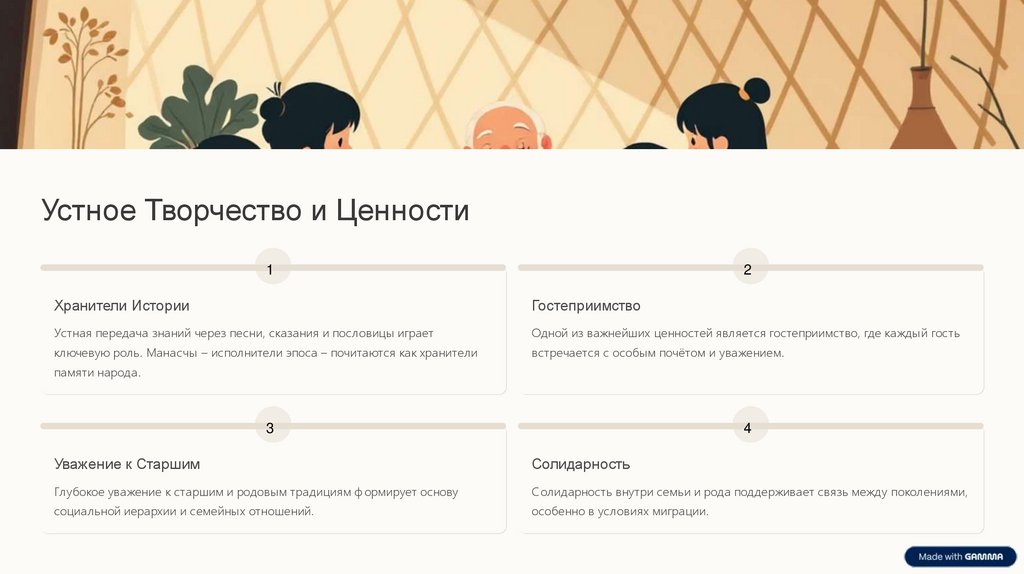 Глубокое уважение к старшим и родовым традициям ф ормирует основу