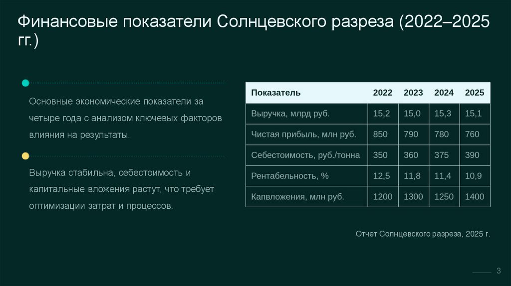 Финансовые показатели Солнцевского разреза (2022–2025гг.)