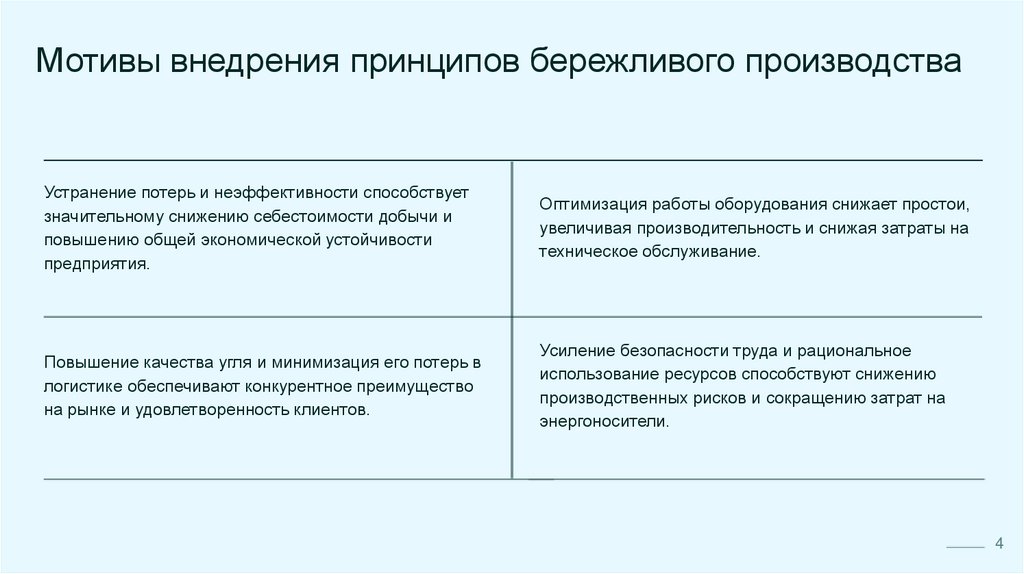 Мотивы внедрения принципов бережливого производстваУстранение потерь и неэффективности способствует