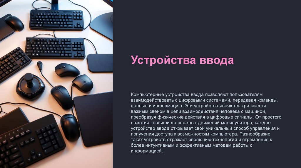 Устройства вводаКомпьютерные устройства ввода позволяют пользователям