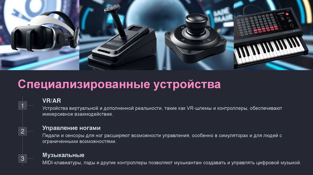 Устройства виртуальной и дополненной реальности, такие как VR-шлемы и контроллеры, обеспечивают