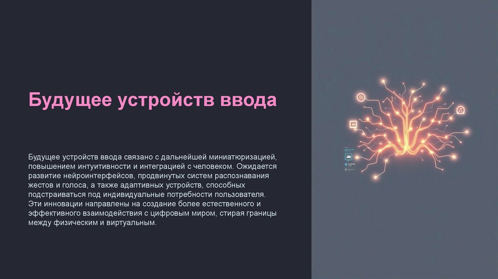 Будущее устройств вводаБудущее устройств ввода связано с дальнейшей миниатюризацией,