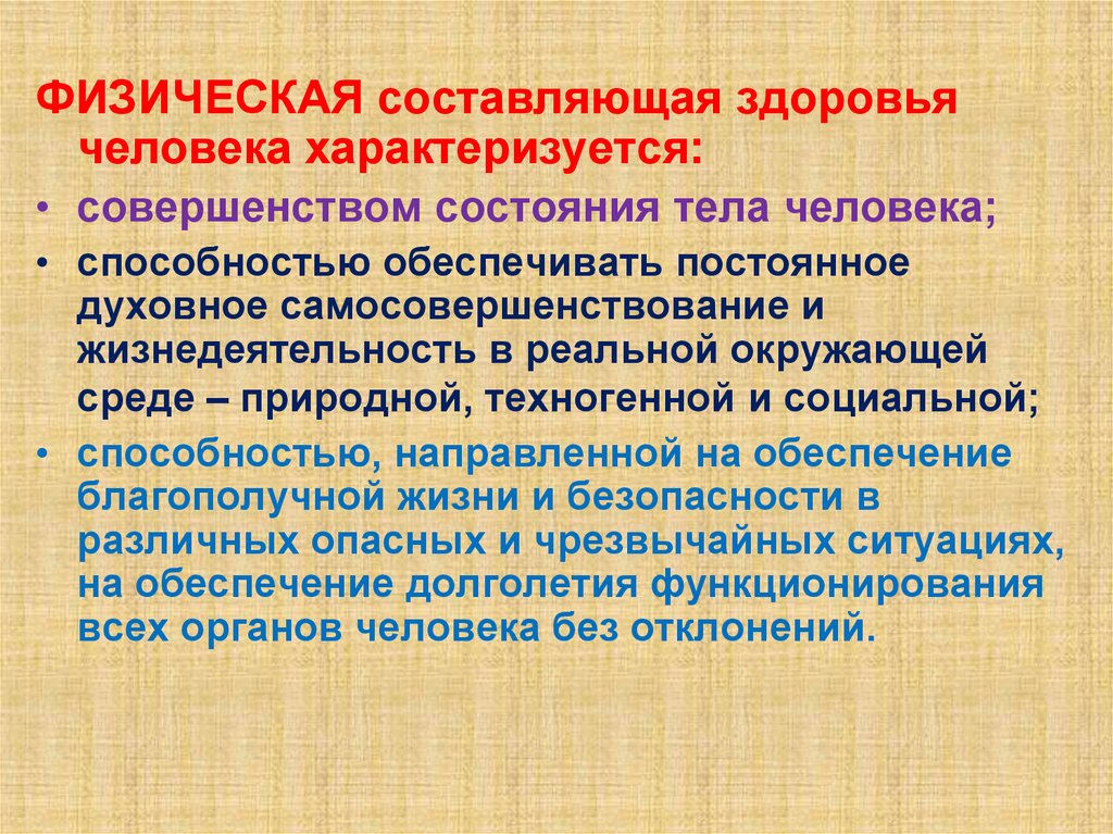 • ФИЗИЧЕСКАЯ составляющая здоровья