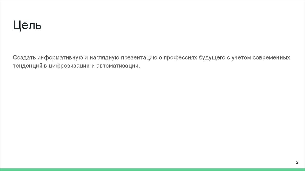 ЦельСоздать информативную и наглядную презентацию о профессиях будущего с учетом современных