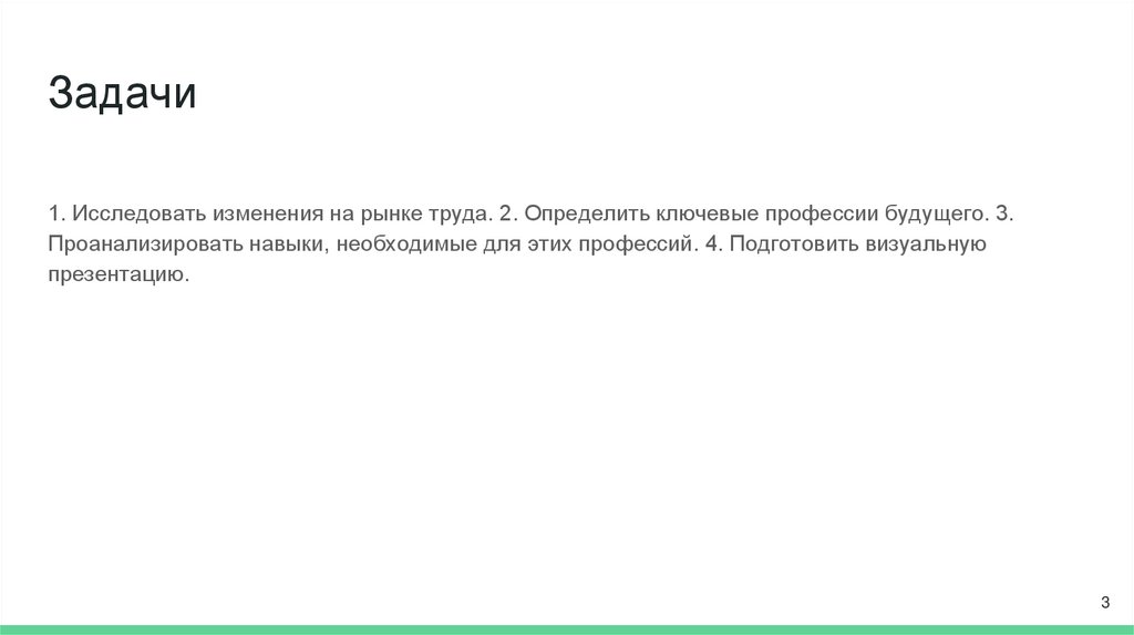 Задачи1. Исследовать изменения на рынке труда. 2. Определить ключевые профессии будущего. 3.