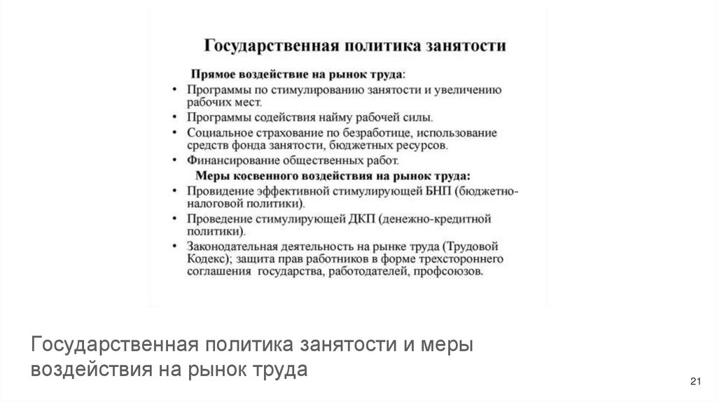 "Актуальные направления трансформации государственной политики в сфере занятости".