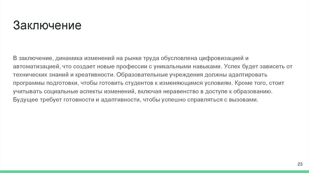 ЗаключениеВ заключение, динамика изменений на рынке труда обусловлена цифровизацией и