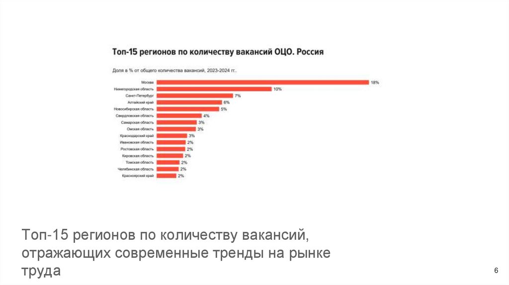 Топ-15 регионов по количеству вакансий,отражающих современные тренды на рынке