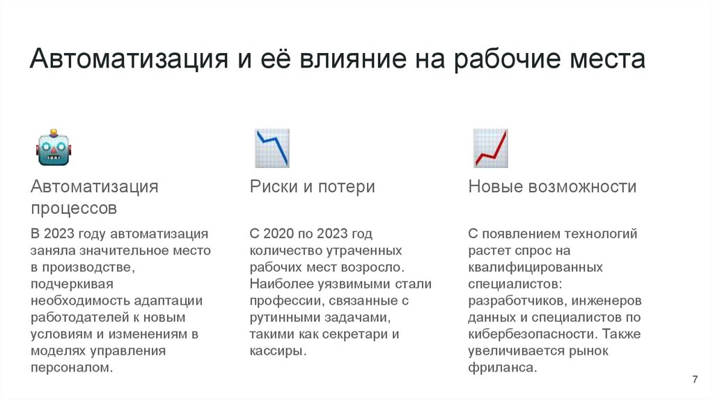 Автоматизация и её влияние на рабочие местаАвтоматизация