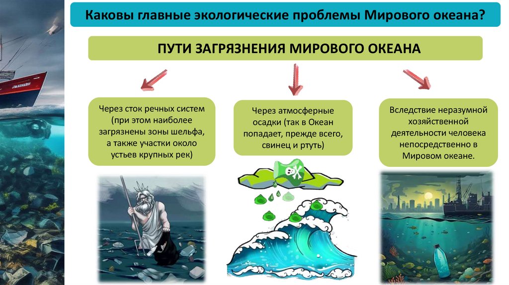 Каковы главные экологические проблемы Мирового океана?ПУТИ ЗАГРЯЗНЕНИЯ МИРОВОГО ОКЕАНА