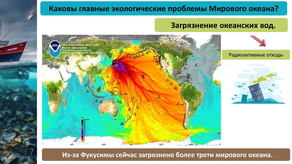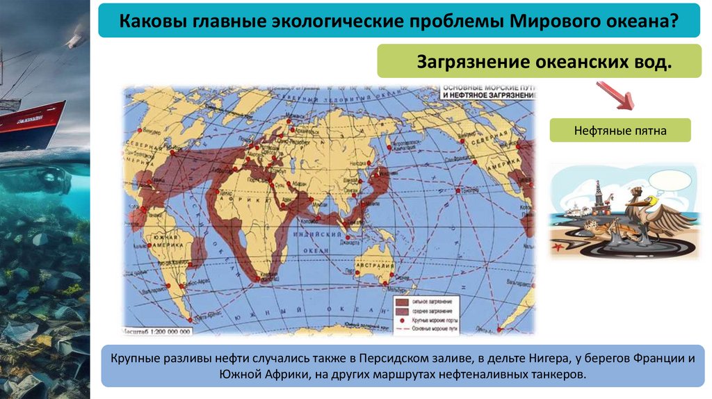Каковы главные экологические проблемы Мирового океана?Загрязнение океанских вод.