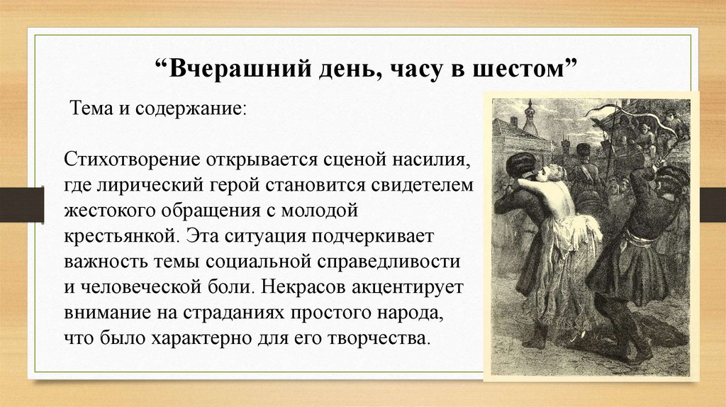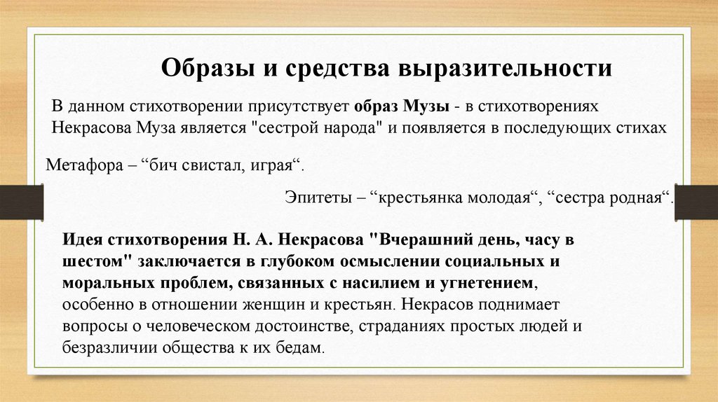 Идея стихотворения Н. А. Некрасова "Вчерашний день, часу в
