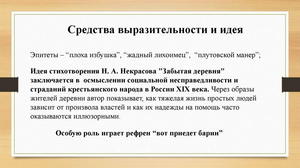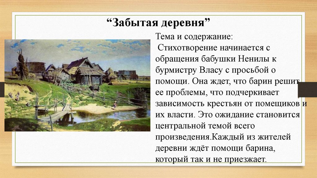 Идея стихотворения Н. А. Некрасова "Забытая деревня"