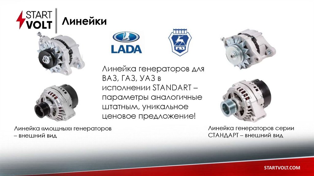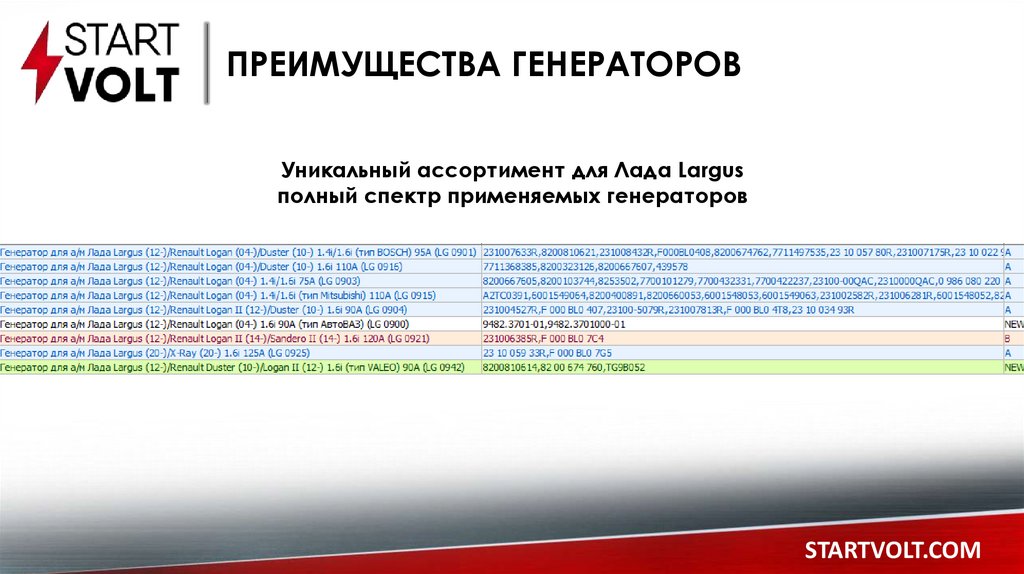 ПРЕИМУЩЕСТВА ГЕНЕРАТОРОВУникальный ассортимент для Лада Largus